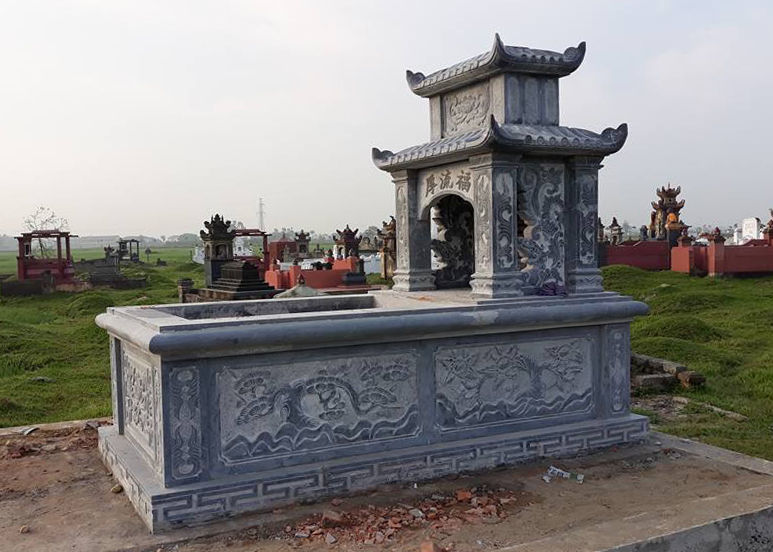 Phần thân mộ và bia đá thường được khắc họa các hoa văn truyền thống như rồng, phượng, hoa sen, chữ Hán, hay các biểu tượng tâm linh đặc trưng của văn hóa Việt. Đây là kiểu mộ thể hiện sự cầu kỳ, tinh tế trong từng đường nét, rất phù hợp với các gia đình có truyền thống thờ cúng lâu đời.